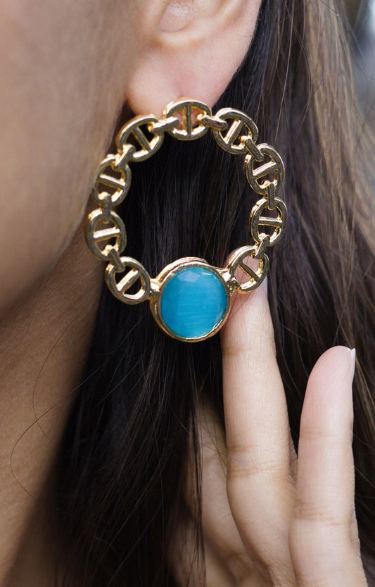 Blue Cat’s Eye Quartz Gemstone Earrings