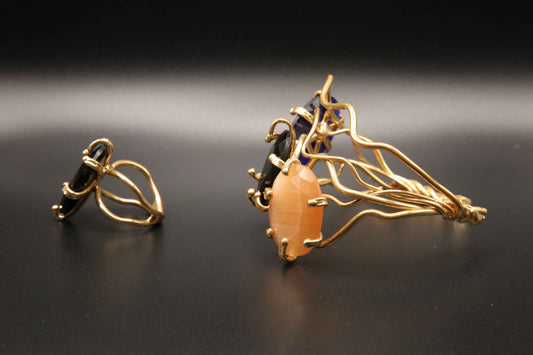 Elegant Multi-Color Cat’s Eye Bracelet & Smoky Black Ring
