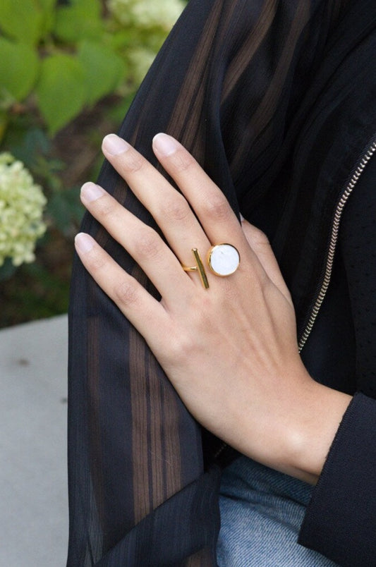 Dual-Tone Natural Cat's Eye Quartz Gemstone Ring