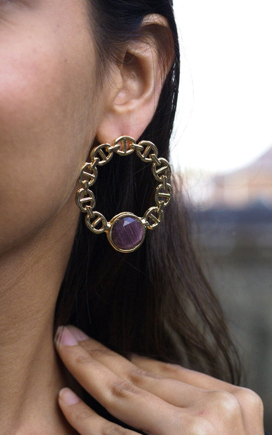 Purple Cat’s Eye Quartz Gemstone Earrings