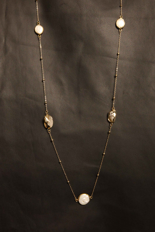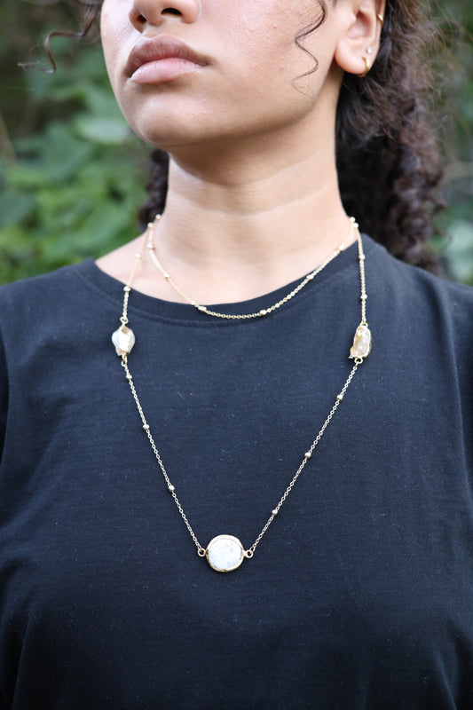 Gold-Plated Pearl and Lapis Lazuli Y Chain Necklace