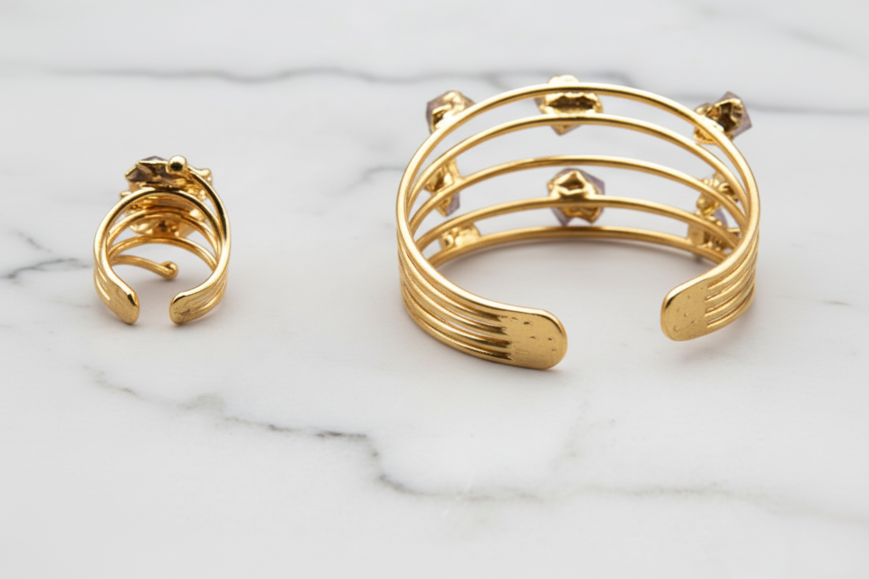 • Adjustable free size for a comfortable and customizable fit for both the bracelet and ring.